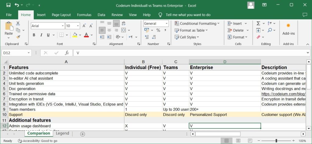 Téléchargez notre tableau comparatif détaillé de Codeium