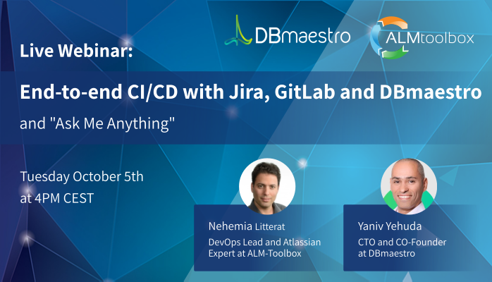 We are hosting Yaniv Yehuda, CTO and Co-founder in DBmaestro Company, to discuss how you can utilize Jira, GitLab CI and DBmaestro to push your organization towards database delivery automation.