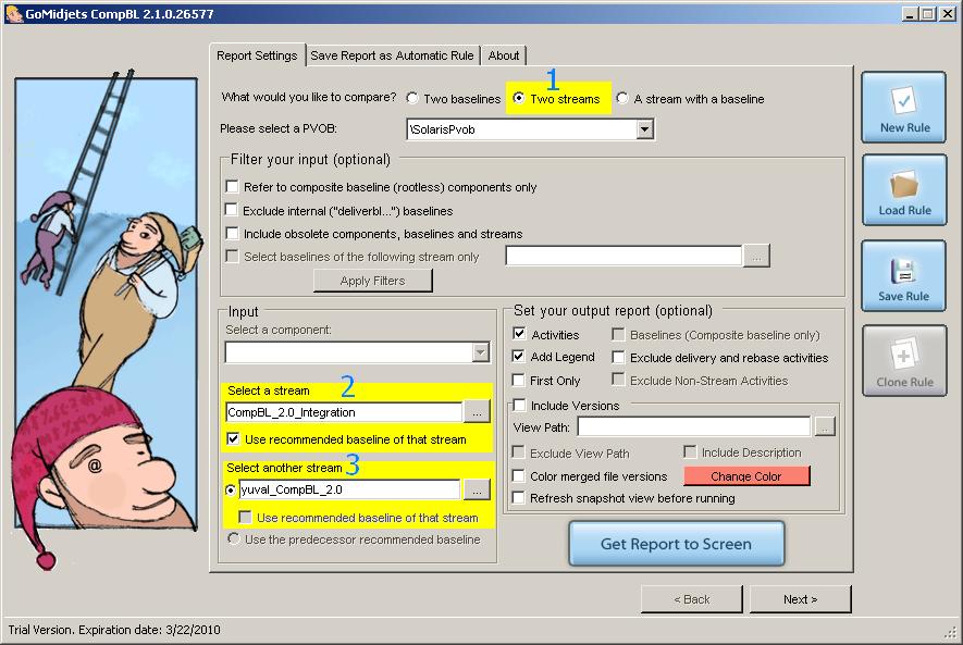Sometimes you rebase your private stream to an integration stream or its recommended baseline. You complete the operation (or havn’t yet), sometimes it requires some merging, and then you encounter new problems: compilation is failed, new bugs or run time errors, build is broken and so on. Here’s a new approach of coping with that problem. The following solution assumes that you use CompBL, A ClearCase plug-in.