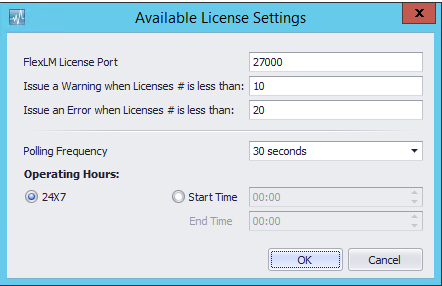 Figure 9: Available License Settings form. You can set warning and critical thresholds for unavailability of licenses.