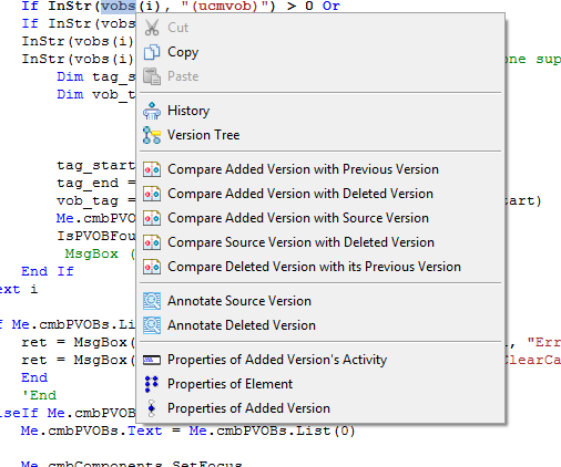 - Launch Visual Annotate for specific file version. This helps you get annotating information for specific file version and its specific ClearCase branch/stream. The following options to launch the utility are now enabled: