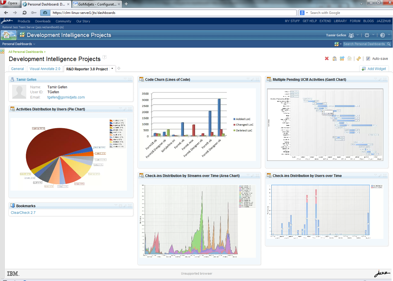 כעת, ניתן גם להציג אותם דרך הדשבורד של (Rational Team Concert (RTC, המבוסס web וניתן להורדה בחינם ולהתקנה עצמית באתר של IBM .