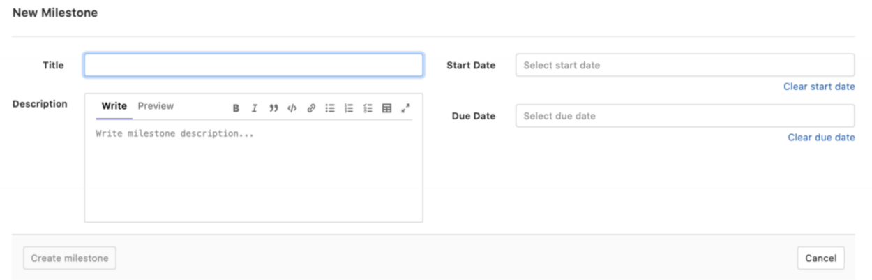 ניתן להוסיף פרטים נוספים ל- milestone, ולקשר אותו לפרוייקט סצפיפי או לקבוצה (group).