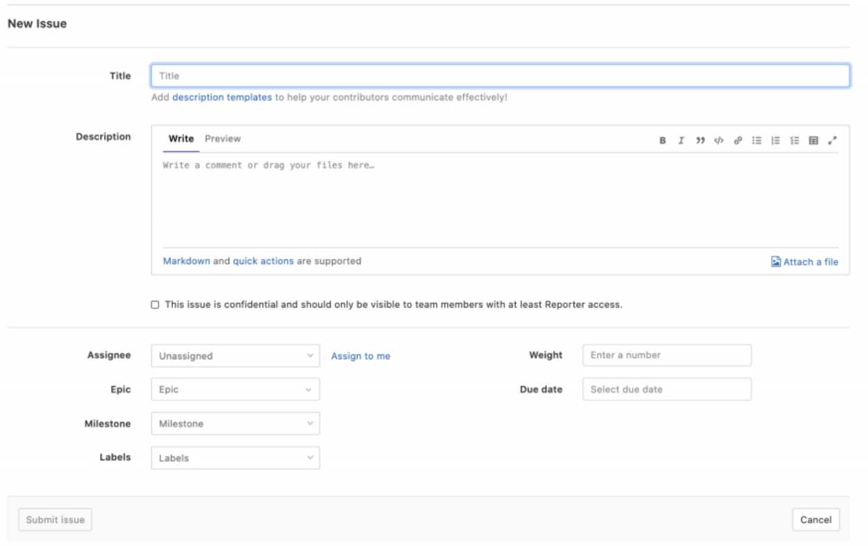 כדאי לדעת: ב- GitLab למעלה מ- 40 פיצ'רים הנוגעים לניהול משימות ו- issue tracking. אפשר לפנות אלינו ולקבל רשימה מפורטת של כל הפיצ'רים, כולל פירוט באיזו גירסא הם זמינים – חינמית / בתשלום וכד'. הפרטים ליצירת קשר בהמשך המאמר (ת.ג.)