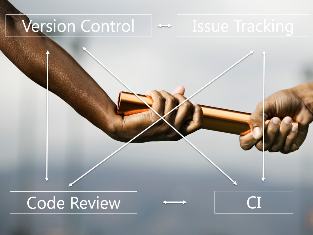 Version Control, Issue Tracking, Code Review, Continuous Integration