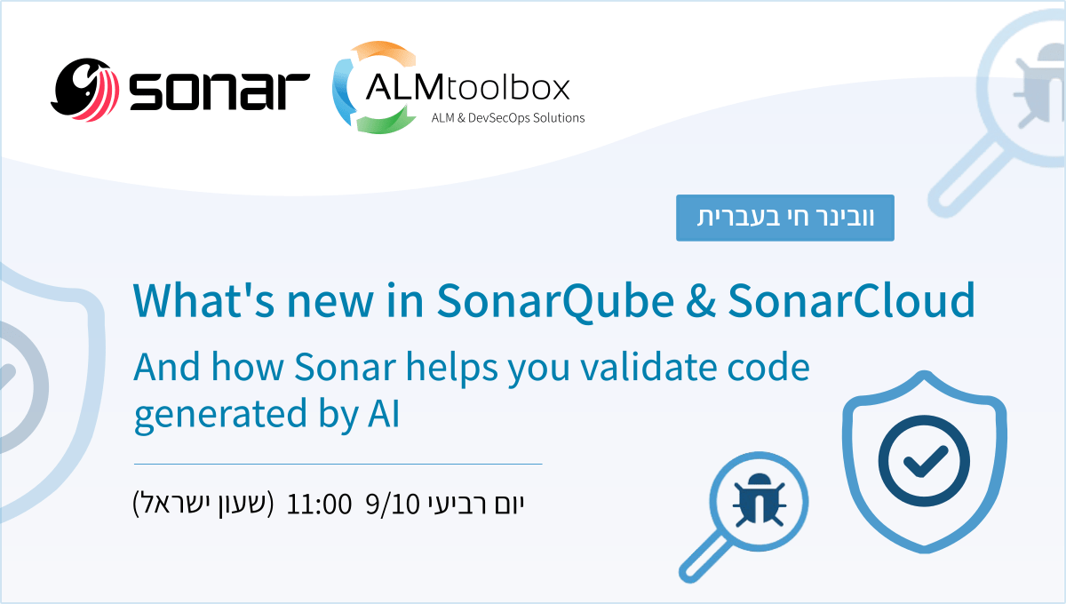 (הבהרה: לא מדובר ב- CodiumAI אלא בחברה אחרת ובפתרון אחר). - הוובינר השני התקיים ב- 9/10/24 : היכרות עם Sonar,