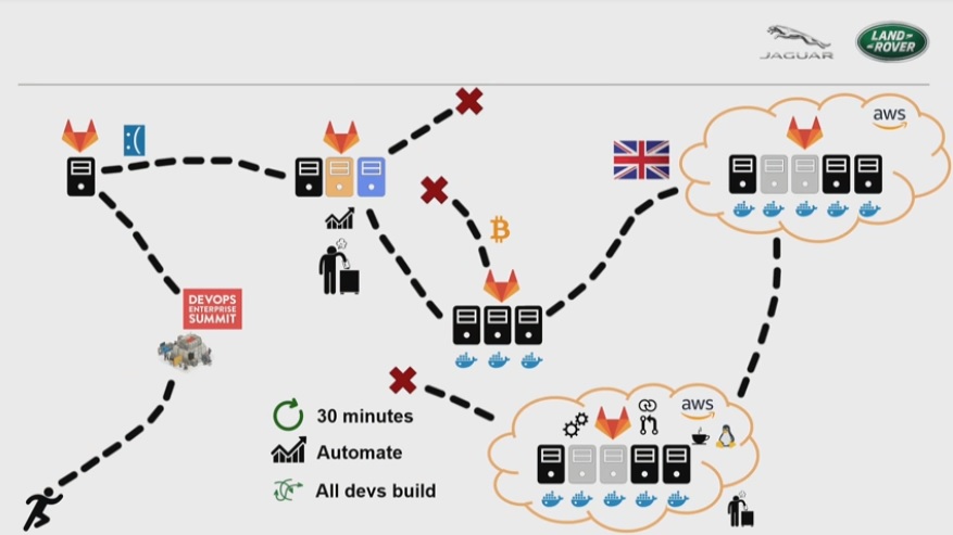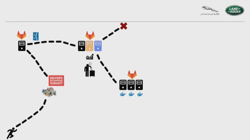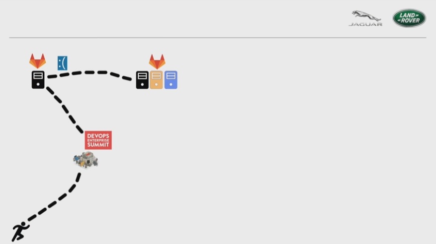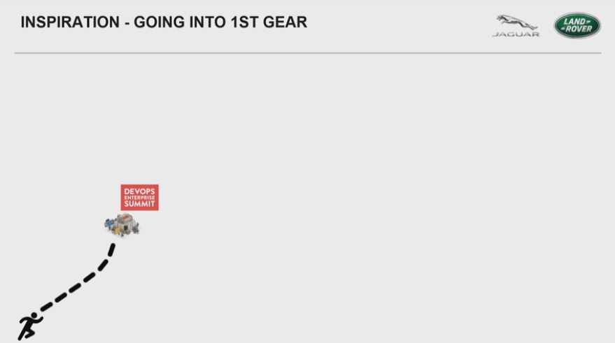 Chris הציג רכב עם בטריה חשמלית שיצא בחודש הבא – הרכב החשמלי הראשון שיגואר מוציאה (Jaguar I-PACE למי שמעוניין לרכוש – הרכב זמין בקרוב גם בארץ …) . הוא הציג את תהליכי ה- DevOps שהם מבצעים ואת ה- "DevOps Journey" שלהם. המסע שלהם החל ב – 2016, ואורכו עד כה שנתיים – והוא טרם הסתיים. הוא הציג זאת כמסע של שינוי והשתפרות תמידית.