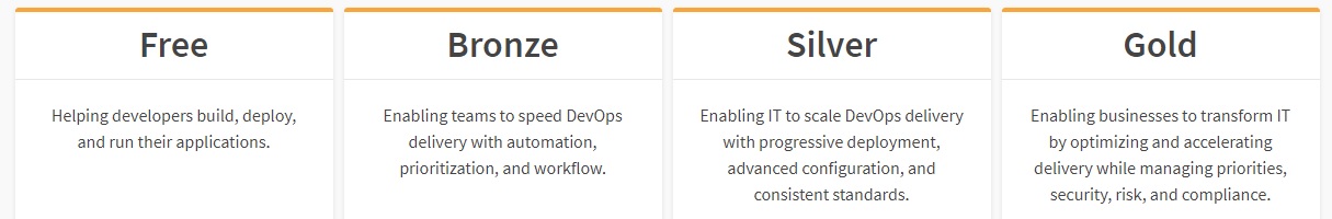 אם רוצים לעבור בענן הציבורי של GitLab – יש 4 אפשרויות, אחת מהן חינמית לחלוטין (ללא אפשרות לקבל תמיכה מהיצרן ועם מגבלת storage של 10GB).