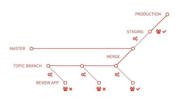 ה- Review Apps מאפשר להרים בקלות סביבה אמיתית מלאה לכל ענף פיתוח (branch) בנפרד, ולשתף אותה עם אנשים אחרים ע"י כך שנותנים להם לינק URL. למעשה מתאפשרת כאן סימולציה מלאה של סביבה אמיתית עוד לפני מיזוג הקוד בחזרה לענף הראשי. הדבר שימושי מאוד לאנשי QA ולאנשי מוצר (product) שרוצים להציג דמו או לנסות פיצ'ר חדש על סביבה מבודדת, באופן מיידי ובלי לבקש "טובות" מאיש פיתוח או DevOps שיבנו להם סביבה.
