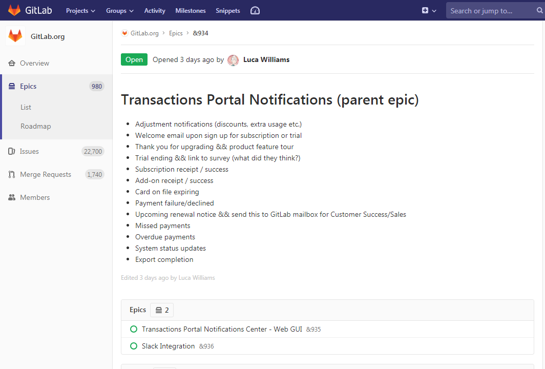 - אפשרות להגיב ולהתחיל דיון חדש מתוך כל הערה (comment) שנוספה ל- Issues , Merge Requests ו- Epics – מה שמאפשר לנהל שיחות בצורה מסודרת יותר תוך שמירה על היררכיה פנימית מסודרת שמאפשרת לראות את ההקשר בין ההערות .