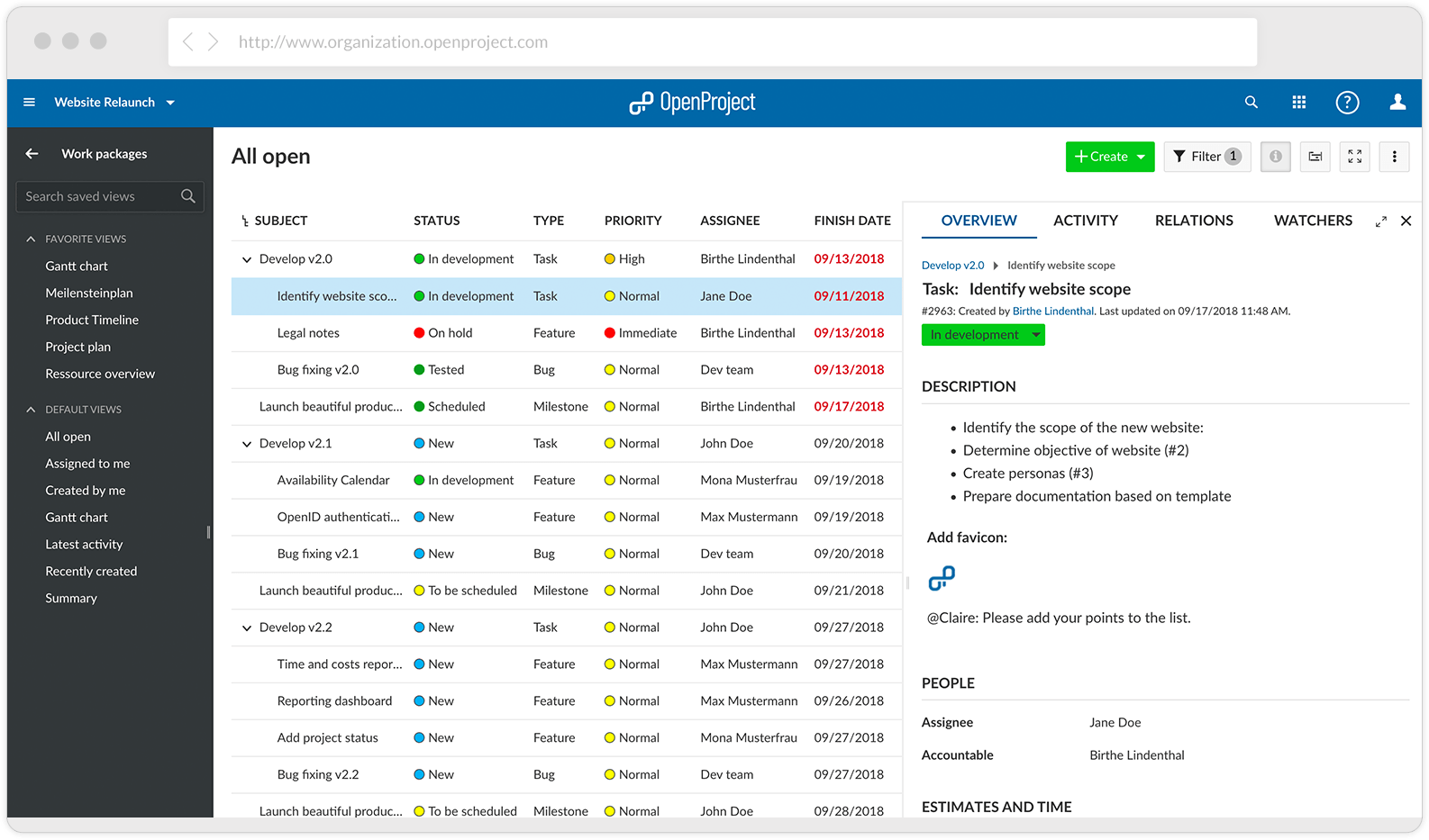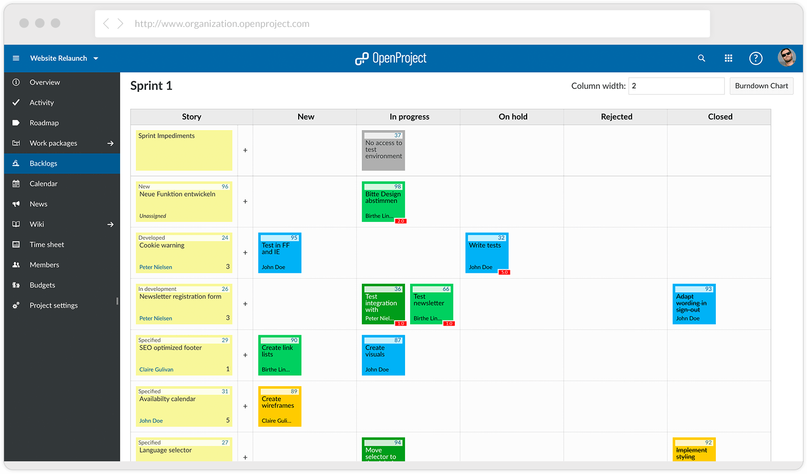 OpenProject הוא כלי לניהול פרוייקטים, משימות פיתוח ובאגים מבוסס שיטות כגון Agile / Scrum / Kanban. הכלי מותאם לשיטות אלה,