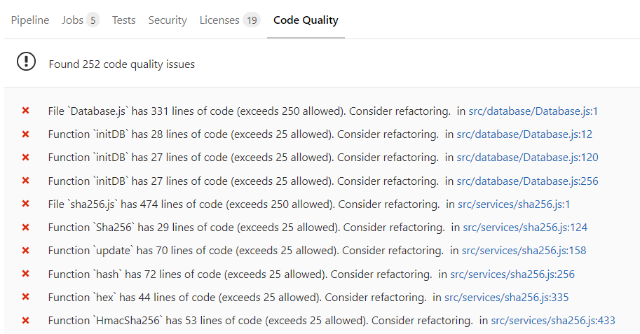 התגלו 252 נושאים של code quality (חלקן חשובות, חלקן קצת פחות):