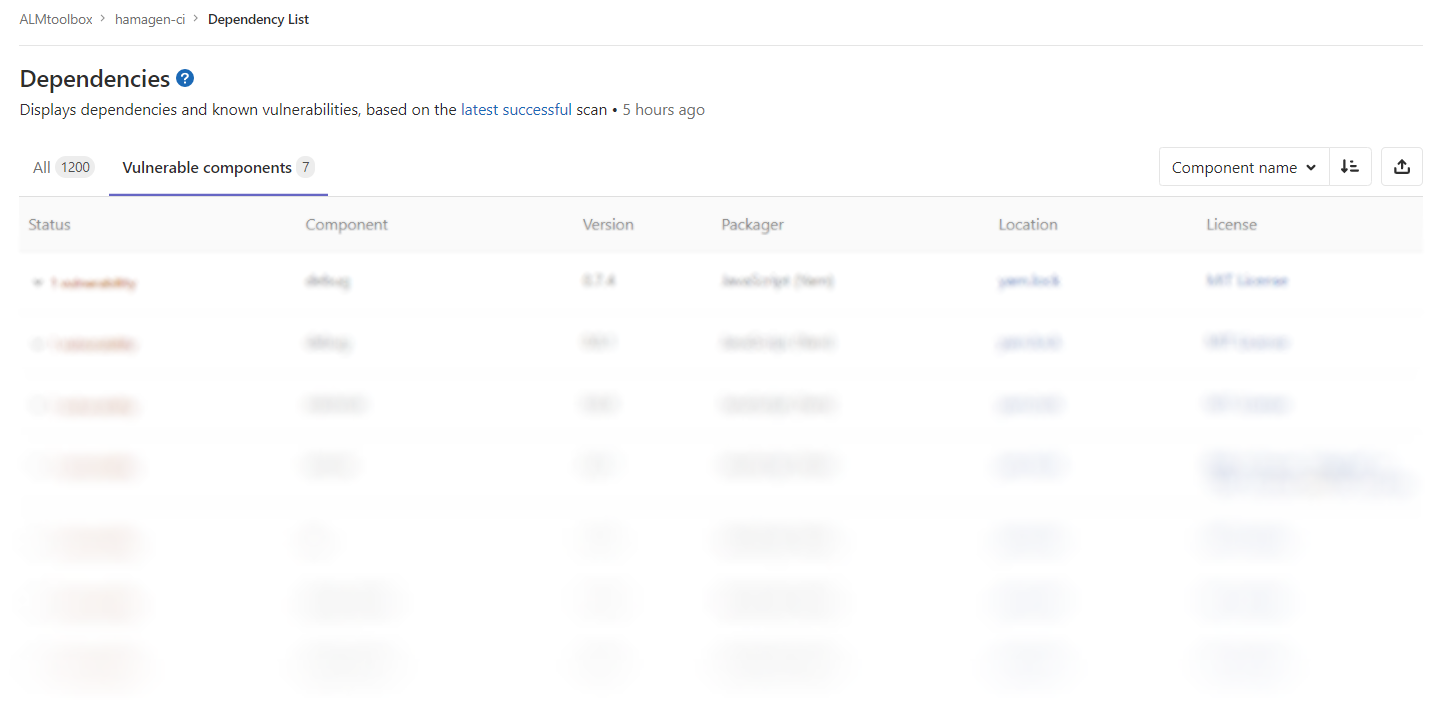 התגלו 7 נקודות תורפה (vulnerabilities) בהרצת dependency scanning :