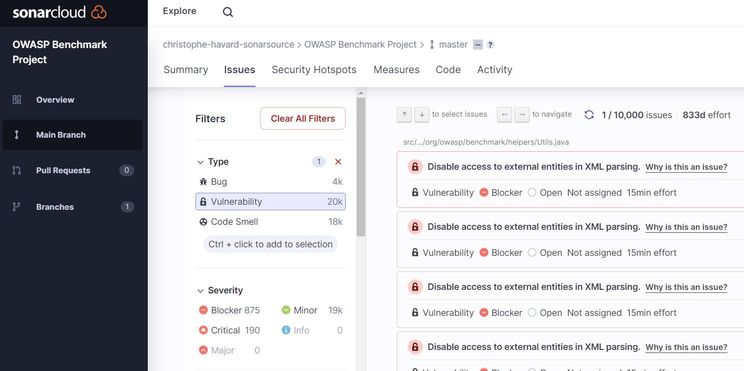 - מעבר על ה- issues שנוצרו לאחר הסריקה (תוצאות הריצה)