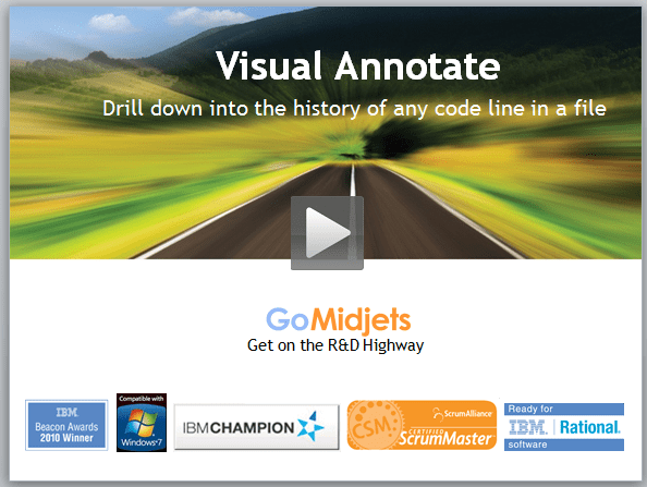 Visual Annotate הוא מוצר המתאים גם ל-ClearCase UCM וגם ל- Base , ומסוגל להציג מידע פיתוחי רב ברזולוציה של שורות קוד, ולעזור לקצר תהליכי תיקוני קוד ותהליכי code review, בדגש על קוד ישן שלא תמיד מוצאים את מי שכתב אותו. בגירסא האחרונה הוספנו מידע רב שניתן להציג, וכן יכולת להציג את המידע ביחס לגירסאות קודמות (show diff). מידע נוסף ניתן לקרוא כאן.