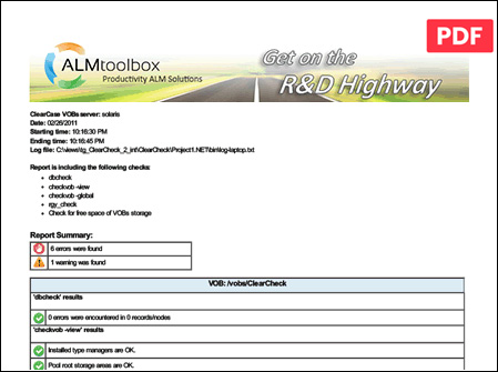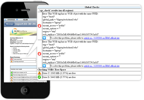 The daily check results are legible and filtered out well. The solution suggestions are clear and simple, so even a junior ClearCase administrator can understand them easily."