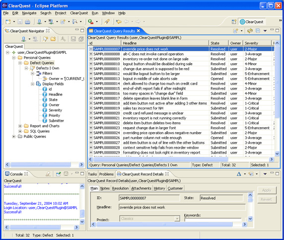 ClearQuest dashboard in Eclipse (click to enlarge)