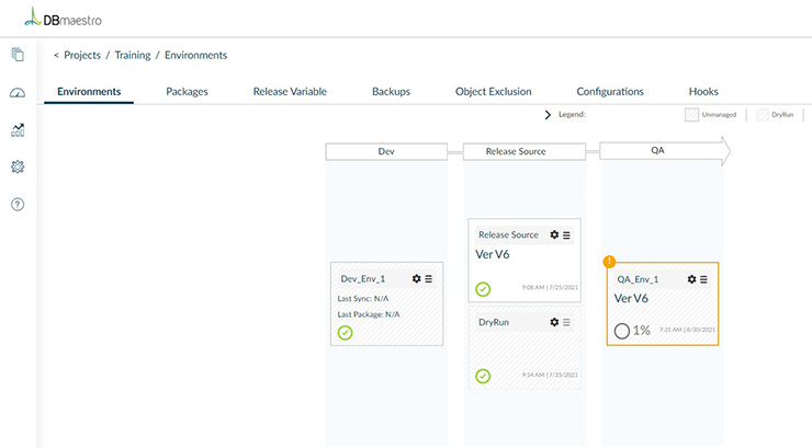 DryRun est un environnement facultatif dans DBmaestro (vous pouvez le configurer lorsque vous définissez votre environnement Release Source).