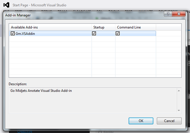 5. Launch Visual Studio and activate the add-in. Go to Tools->Add-in Manager, and check all checkboxes in GM.VSAddin