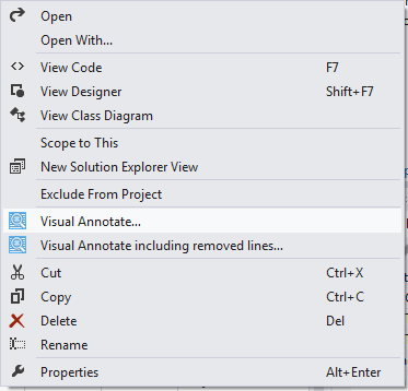 Figure 2: Solution Explorer’s context menu, integrated with Visual Annotate.
