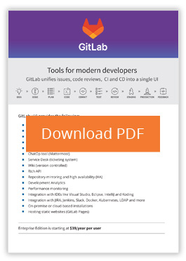 GitLab provides a dashboard that lets teams measure the time it takes to go from an idea to production. GitLab can provide this data because it has all the tools built-in: from the idea, to the CI, to code review, to